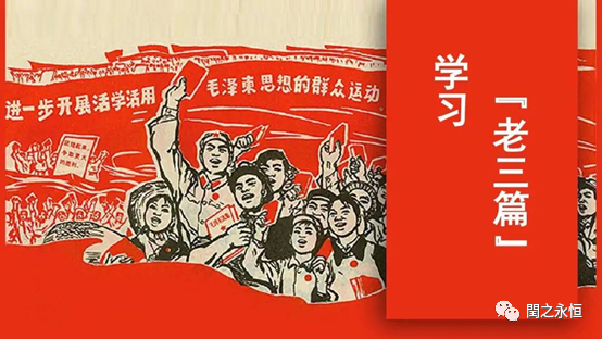 一句话,“老三篇”具有极强的教育力、培养力,我们党的事业需要先进分子,哺育先进分子需要“老三篇”。
