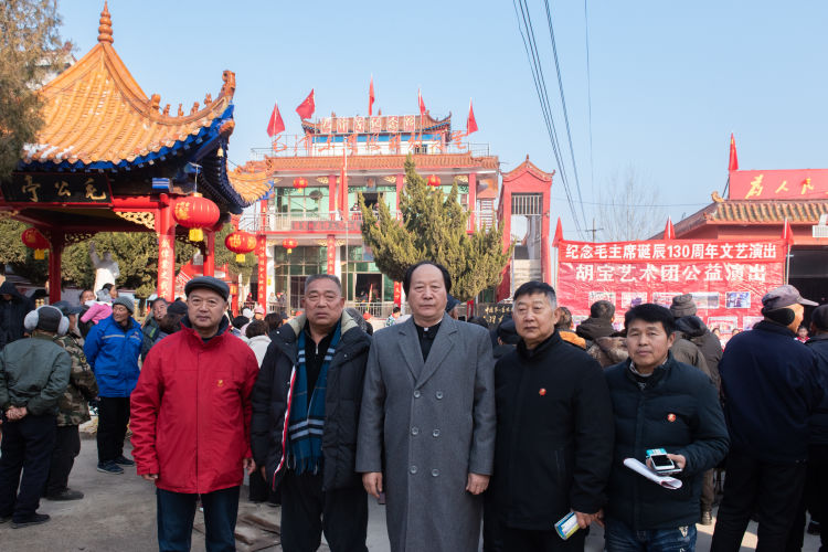 12月26日,是伟大领袖毛主席诞辰130周年纪念日。菏泽市东明县朱口村中国第一座农民兴建"毛泽东纪念馆"前,早已人群如潮,红旗招展,鼓乐齐鸣;《东方红》和颂扬人民领䄂的红歌此起彼伏,人们怀着最为崇高的敬意,以不同的文艺演出形式,深切缅怀毛泽东同志为中国人民解放事业、社会主义革命和建设事业作出的不可磨灭的历史功勋。
