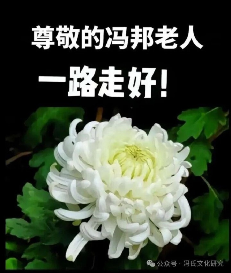 惊悉冯邦先生去世噩耗,深感悲痛。 先生风范在,音容笑貌浮现。 在多年来与先生相见中,深感其高风亮节之品德,平易近人之品格。 冯邦先生于10月17日十一点十一分来电话给我联系,共谈三分28移时间,其97岁高龄,思维敏捷,谈吐清晰,念及家国怀使我感同身受。 在同日十九点许和二十点许及二十日二十点二十三分许我给其联系数次,电话均关机状态。 先生驾鹤西去,给我留下极其悲痛和深深的遗憾。 先生走了,我们要化悲痛为力量,学习其热爱党和国家情怀,与人为善和做人的原则性。 冯邦先生走了。 冯邦先生千古流芳。